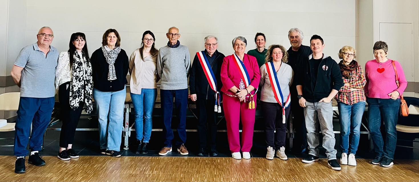| De gauche à droite : Anne BERNARD, Eliane RAPAIC, Yoann DUFRAISSE, François MORICONI, Elisa LOISEAU, Mathilde BUREAU, Cécile BECKER, Emile GUIONIE, Pascal LAVERGNE, Elise VENEAU, Maire-France BOGERMAN, Elodie BECKER, Michel POIRIER. (absents : Bertrand AVRIAL et Godefroy de MAURAIGE) |